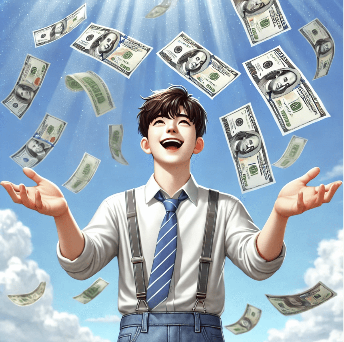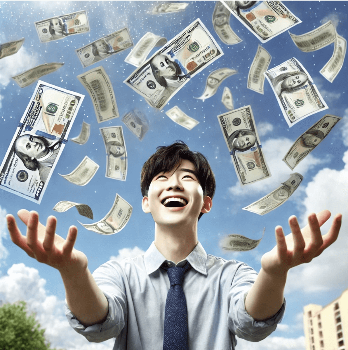 돈이 하늘에서 비처럼 쏟아지는 꿈 → 갑작스러운 기회가 찾아올 가능성