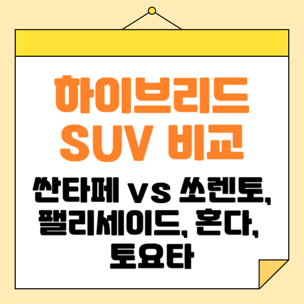 하이브리드 SUV 시장에서 현대 싼타페 하이브리드는 강력한 성능과 뛰어난 연비, 넓은 실내 공간 및 첨단 편의 사양을 갖춘 균형 잡힌 모델로 자리 잡고 있습니다. 기아 쏘렌토 하이브리드는 싼타페와 동일한 파워트레인을 사용하면서도 더 넓은 실내 공간을 제공합니다. 현대 팰리세이드 하이브리드는 대형 SUV의 여유로운 실내와 강력한 출력이 강점이지만, 연비는 상대적으로 낮은 편입니다. 반면, 토요타 하이랜더 하이브리드는 넓은 공간과 패밀리 SUV로서의 장점을 극대화한 모델이며, 혼다 CR-V 하이브리드는 최고의 연비 성능과 경제성을 바탕으로 한 효율적인 차량입니다.