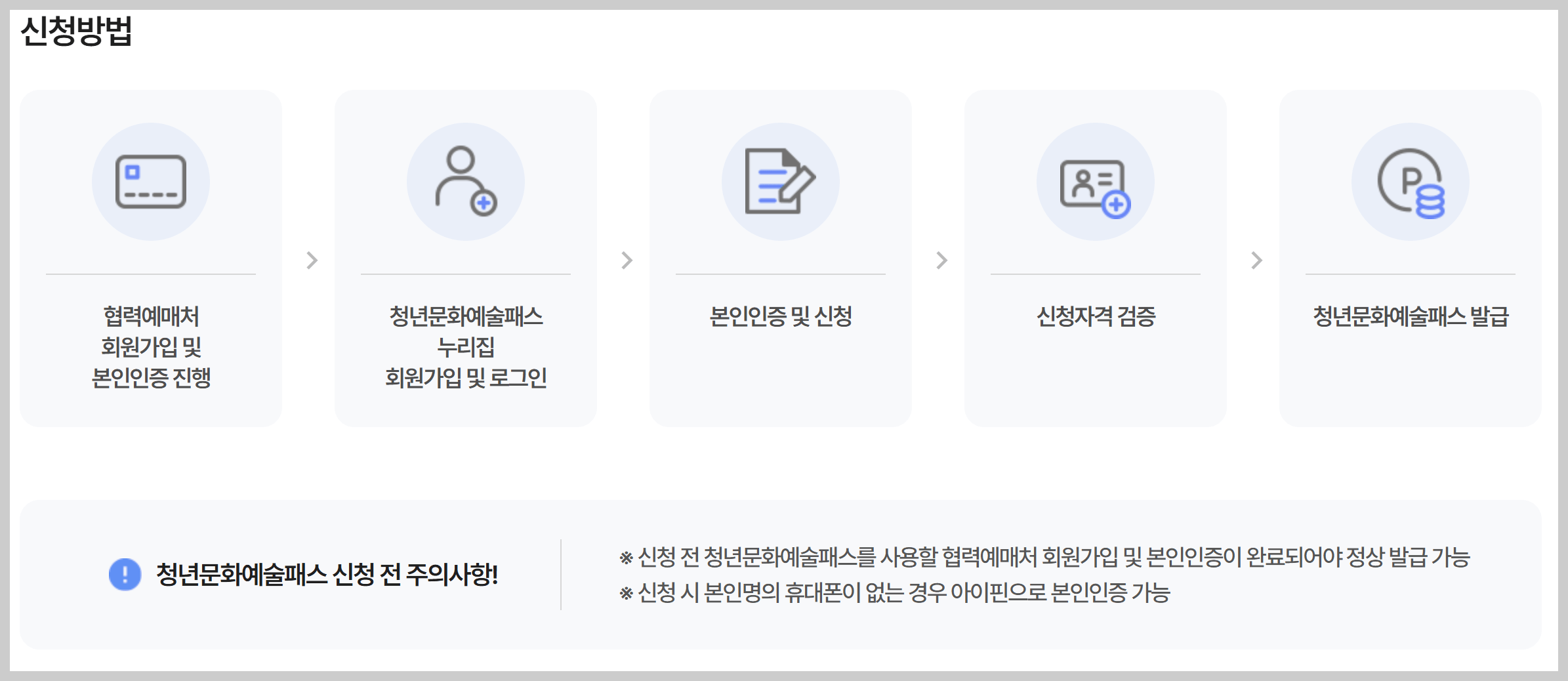 이제, 청년문화예술패스를 어떻게 신청하고 사용할 수 있는지 살펴보겠습니다.