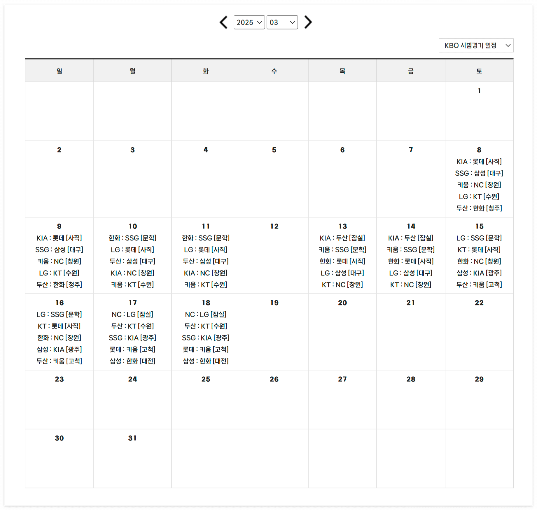 2025년 프로야구 시범경기 일정
