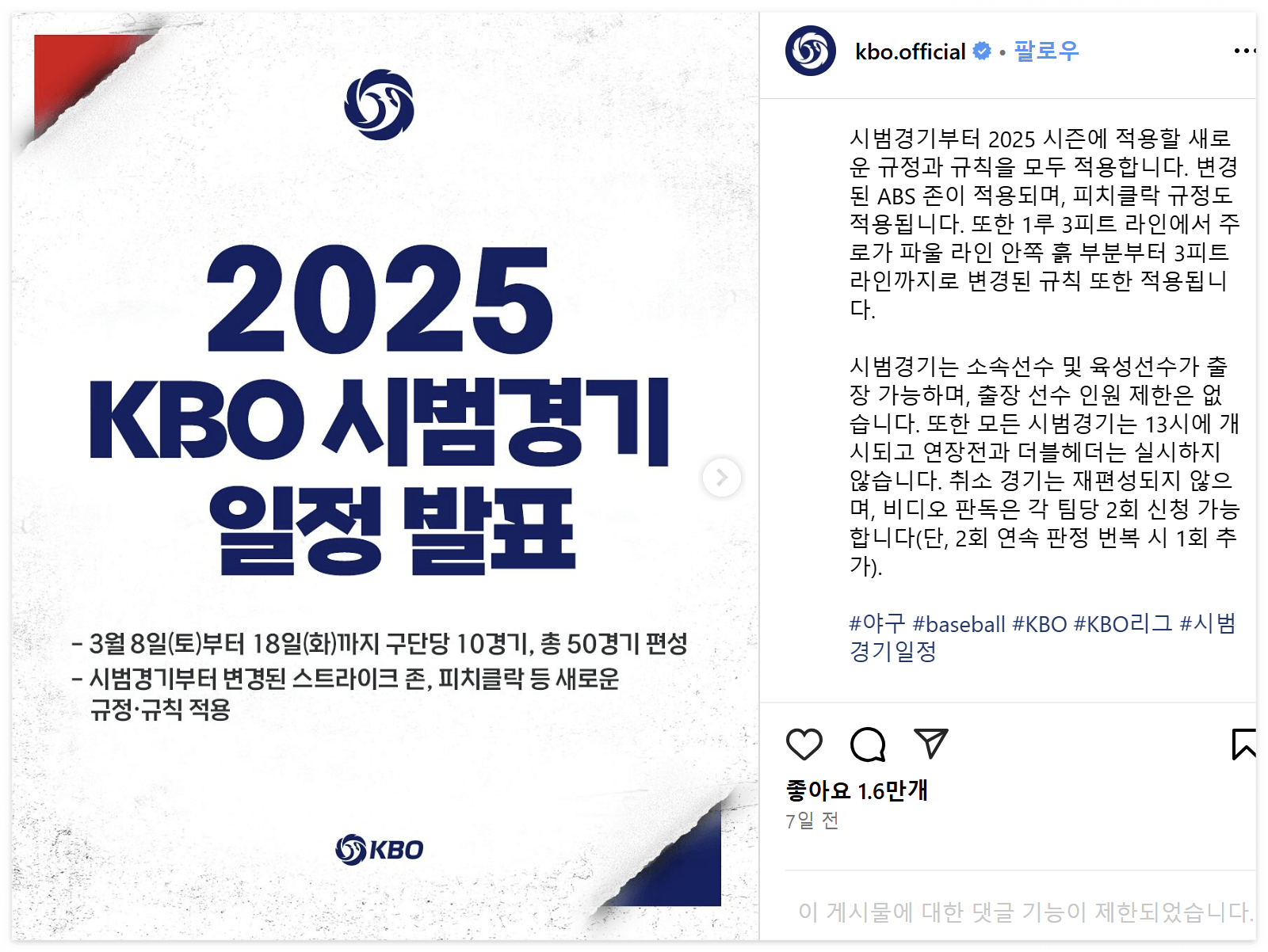 2025년 시범경기 주요 변경사항